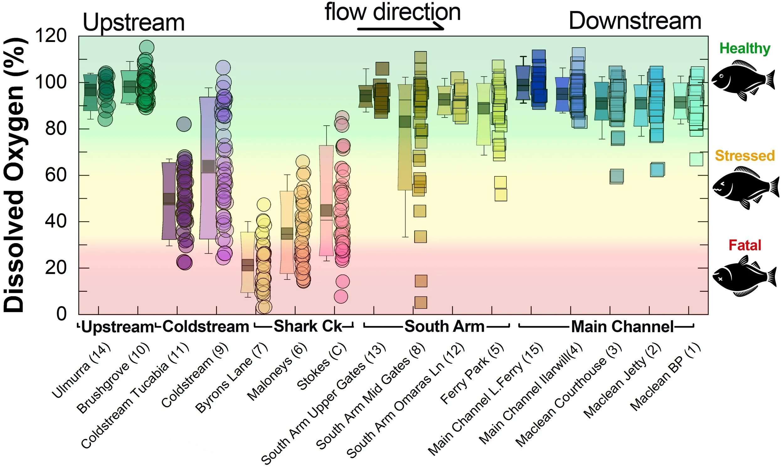 Fish, crabs, worms, molluscs, prawns and other aquatic life all need dissolved oxygen to survive.